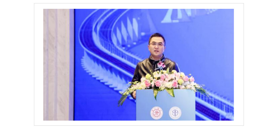 上海交通大学转化医学研究院书记张显明致辞,希望与会的企业家、教授为推动医学和工程的融合做更突出的贡献。