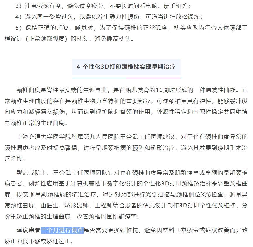 颈椎病的早期预防与治疗 | 附3D打印颈椎枕典型病例分享